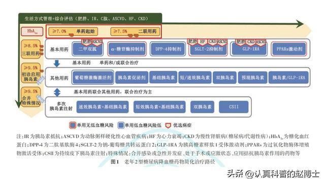 《中国糖尿病防治指南(2024版)》 简言之,要念念在糖尿病的中晚期阶段裁减糖尿病肾病、糖尿病神经系统病变、糖尿病足等并发症的风险以致拦阻心梗、脑梗等致命性心血业绩件的发生,那么,就必须在糖尿病的早期阶段尽量严格地适度好血糖。 而过往,那种让早期老年糖尿病患者“放宽”血糖适度目标的行动,则无疑是不利于这些患者的! 为此,最新的《中国老年2型糖尿病防治临床指南(2026年版)》也成功在【用药经由】上提供了更为成功的要求: 比如,当老年2型糖尿病患者的糖化血红卵白(HbA1c)水平≥7.0%(但<7.5%)时,就建议至少启动某一种降糖药(单药)的诊治了;而一朝老年2型糖尿病患者的糖化血红卵白(HbA1c)水平跳动了7.5%,则建议成功聚首两种不同作用旨趣的降糖药。
