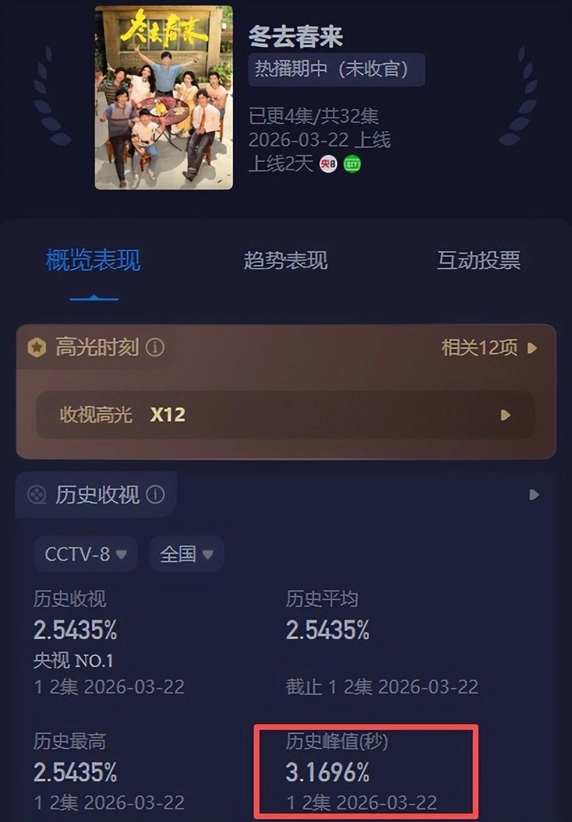 说出来你们都不敢信,开播半小时,收视峰值奏凯飙升到3.1687%。 不仅刷新了2026年央八最快破三的记载,还奏凯冲进了央八历史收视榜前三,离谱又得力! 关系话题阅读量超10亿,全网都在追这部剧。