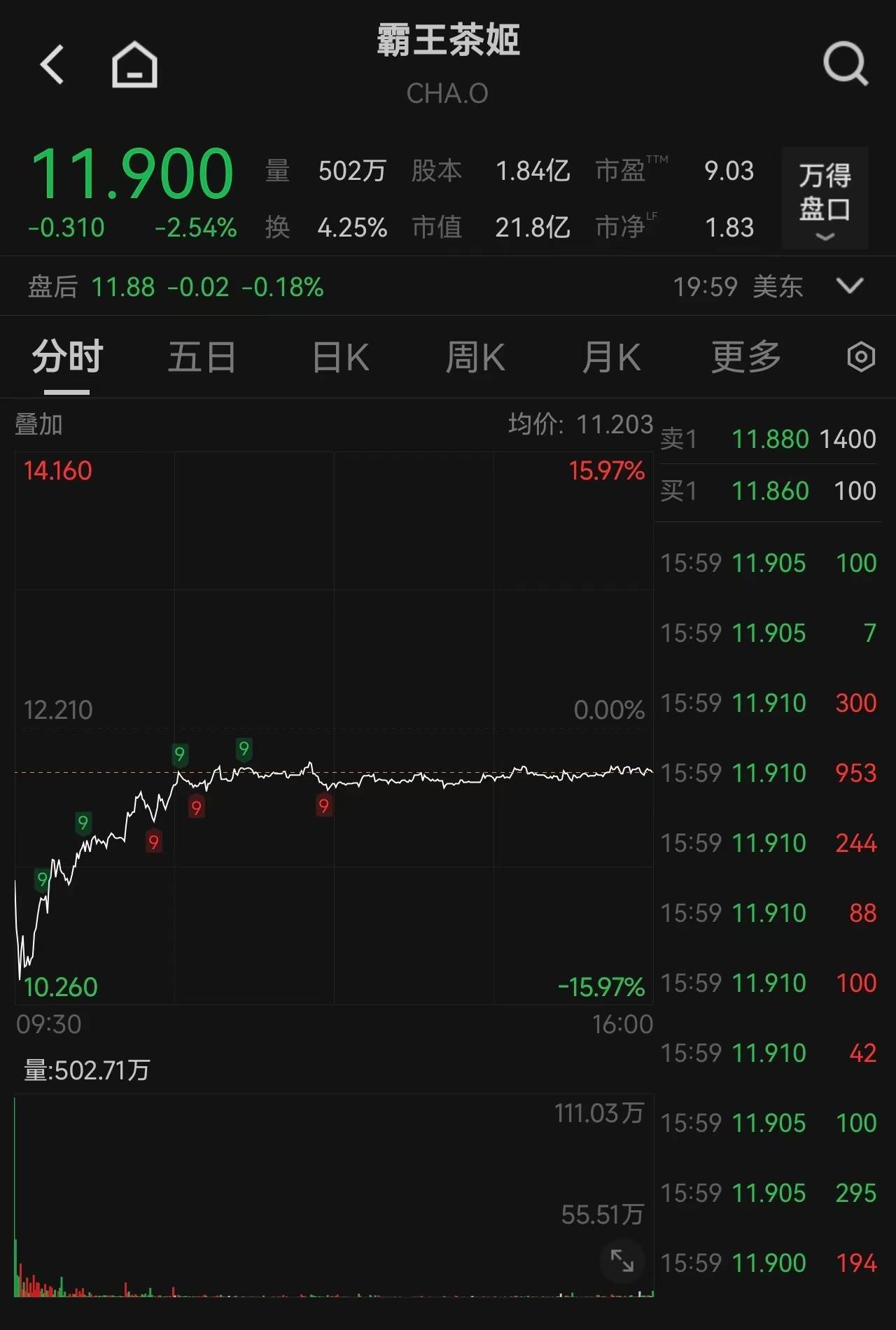 12月26日,霸王茶姬好意思股开盘下挫,一度跌近16%,股价创上市以来新低,最终收跌2.54%。12月27日上昼,#霸王茶姬大跌#话题登上了微博热搜第一。